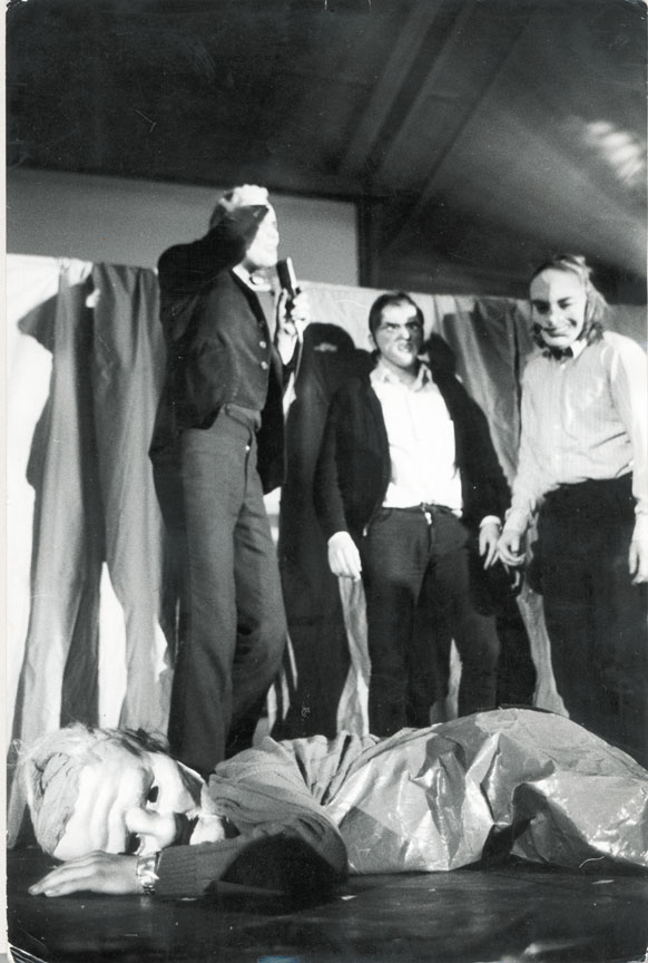 1970: Vom HCT zu den Roten Steinen Am 2.1.1970 zog man in eine Fabriketage in der Oranienstraße 43. Nachdem die Lehrlinge Teil des HCT geworden waren, gab es in der nun erweiterten Gruppe unterschiedliche Auffassungen darüber, wie es mit dem Theater weitergehen sollte. Man trennte sich schließlich. | ||||||||||||||||||||||||||||||||||||||||||||||||||||||||