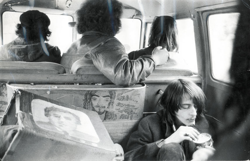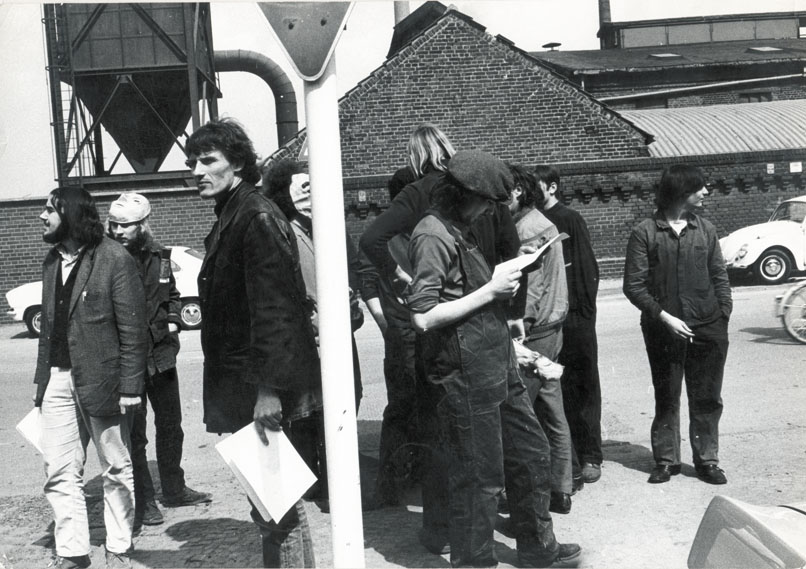 1970: Berliner Proleten erobern die Domstadt Im März d. J. gab es für die Roten Steine eine Einladung nach Köln, wo das Agitationskonzept vor Betrieben und in Jugendeinrichtungen erfolgreich ausprobiert wurde. Nach den Erfahrungen in Köln verstärkte sich Rios Bedürfnis nach einer eigenen Band, denn er sah nun die Chance weit effektiver Menschen mit seiner Musik politisch und im weitesten Sinne menschlich zu erreichen, als er es vielleicht als "Politiker" hätte können. Michael Böhme war so einer, er managte die PL/PI, Proletarische Linke/Parteiinitiative und war nebenbei noch als Medienmensch tätig und fertigte zu dieser Zeit einen Dokumentations-Film mit dem Titel: "Fünf Finger sind eine Faust" an. Zu diesem ARD-Film über die Ziele der APO steuerte die Gruppe, die zu diesem Zeitpunkt noch keinen Namen hatte, ihre Songs bei, z.B. "Macht kaputt, was Euch kaputt macht" und "Wir streiken". Nach der Ausstrahlung des Films riefen über tausend Zuschauer bei dem Sender an - nicht weil sie sich über den politischen Inhalt dieser Dokumentation beschweren wollten - sondern um zu erfahren, wo man die unterlegte Musik käuflich erwerben konnte. | |||||||||||||||||||||||||||||||||||||||||||||||||||||||||