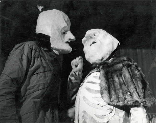 | An diesem Abend in der Naunynstraße legte das HCT einfach Gummimasken auf den Tisch. Einige der anwesenden Kreuzberger Lehrlinge und Jungarbeiter nahmen sie sich und spielten spontan eine selbsterfundene Szene, in der ein arbeitsloser Mörder zum Arbeitsamt geht und das Arbeitsamt unfähig war, dem Mörder eine Stelle zu vermitteln. In dieses Spiel stiegen die Mitglieder vom HCT ein. Aus dem Spass, den das Spiel allen Beteiligten machte, entwickelte sich eine weiterreichende Zusammenarbeit. | |||||||||||||||||||||||||||||||||||||||||||||||||||||||||